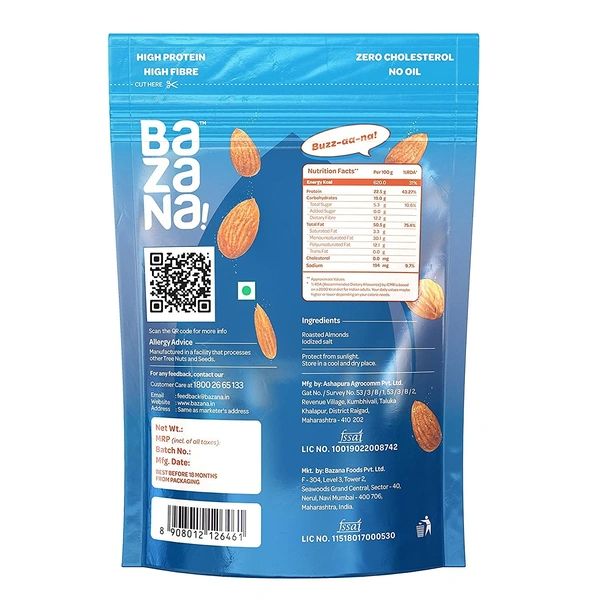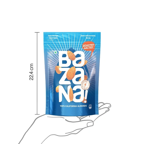 Bazana Roasted Salted Almonds | 100% California Almonds | Not Fried, Roasted Salted Almonds | 1 Pack, 190g