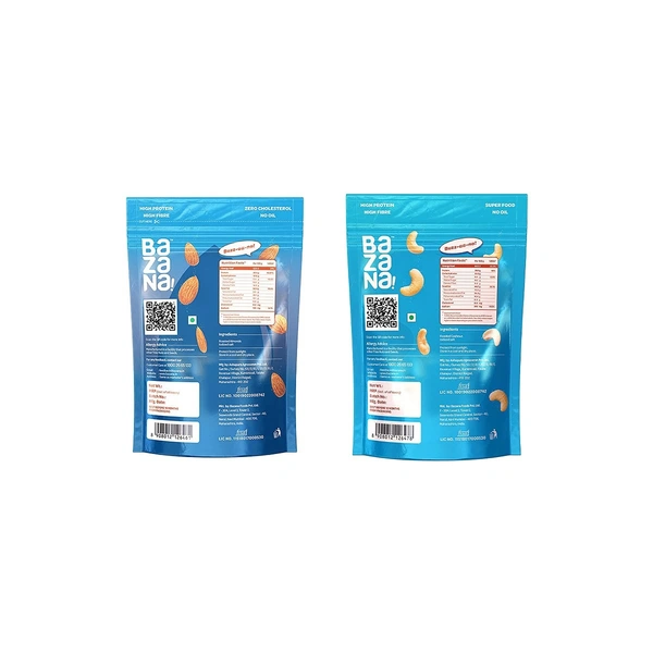 Bazana takes pride in delivering the highest quality products, and each pack is sealed to ensure freshness and flavor. With this set, you can enjoy the goodness of both almonds and cashews, conveniently packaged for your snacking pleasure.