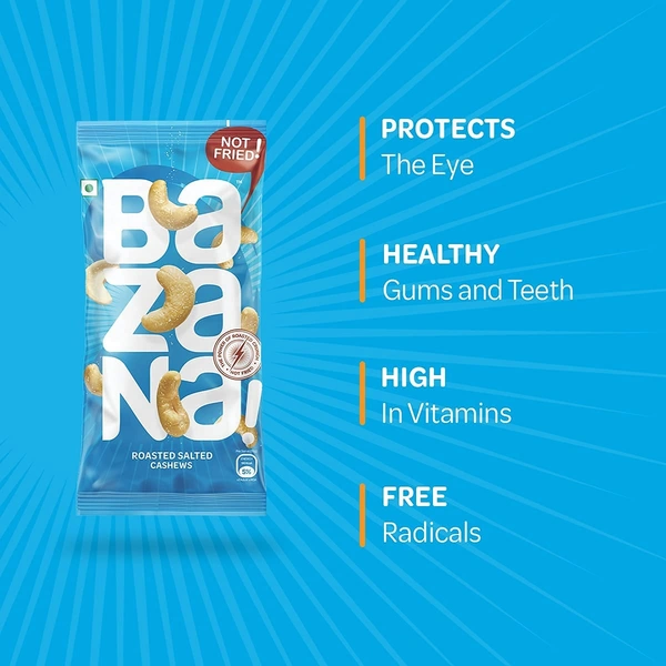 Savor the goodness of Bazana Roasted Salted Cashews and elevate your snacking routine. With their perfect crunch and delectable taste, they are sure to satisfy your cravings while providing a nutritious boost to your day. Order your pack today and experience the joy of healthy snacking with Bazana.