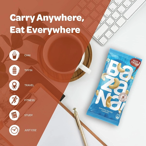 With Bazana Roasted Salted Cashews, you can enjoy a guilt-free snack anytime, anywhere. Whether you're at home, in the office, or on the go, these conveniently packaged snacks are your ideal companion. They fit perfectly into your bag, backpack, or lunchbox, ensuring you have a nutritious and tasty option within reach.